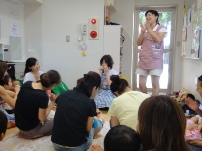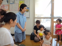 以外に知らない、保育園での保育体験など、お母さんたちも話しをしっかり聞いていました。