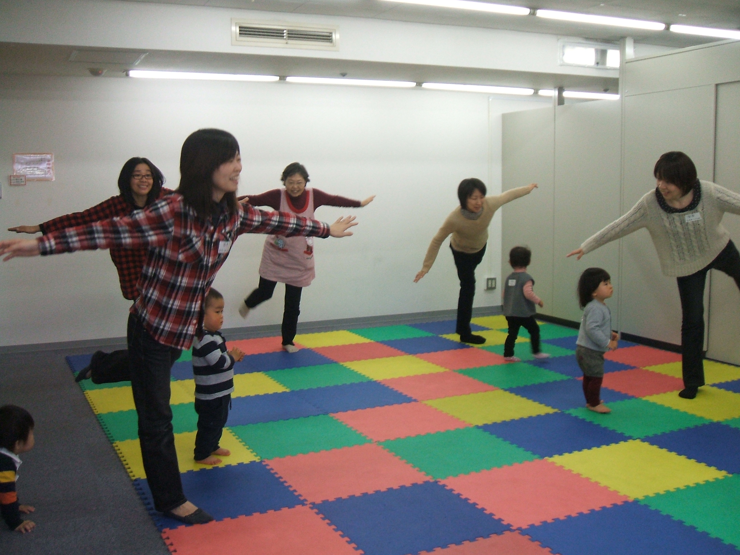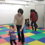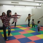 音楽にあわせてママと一緒に歩いたり、ジャンプしたり・・・。