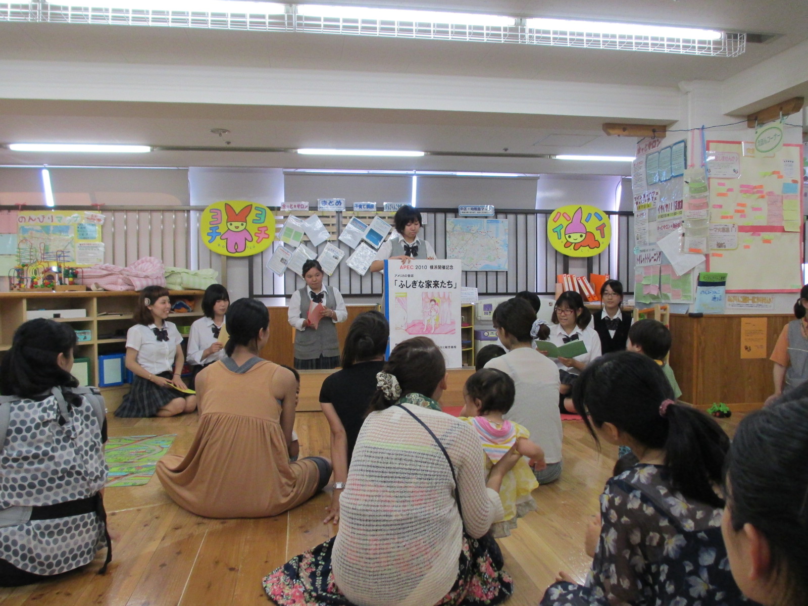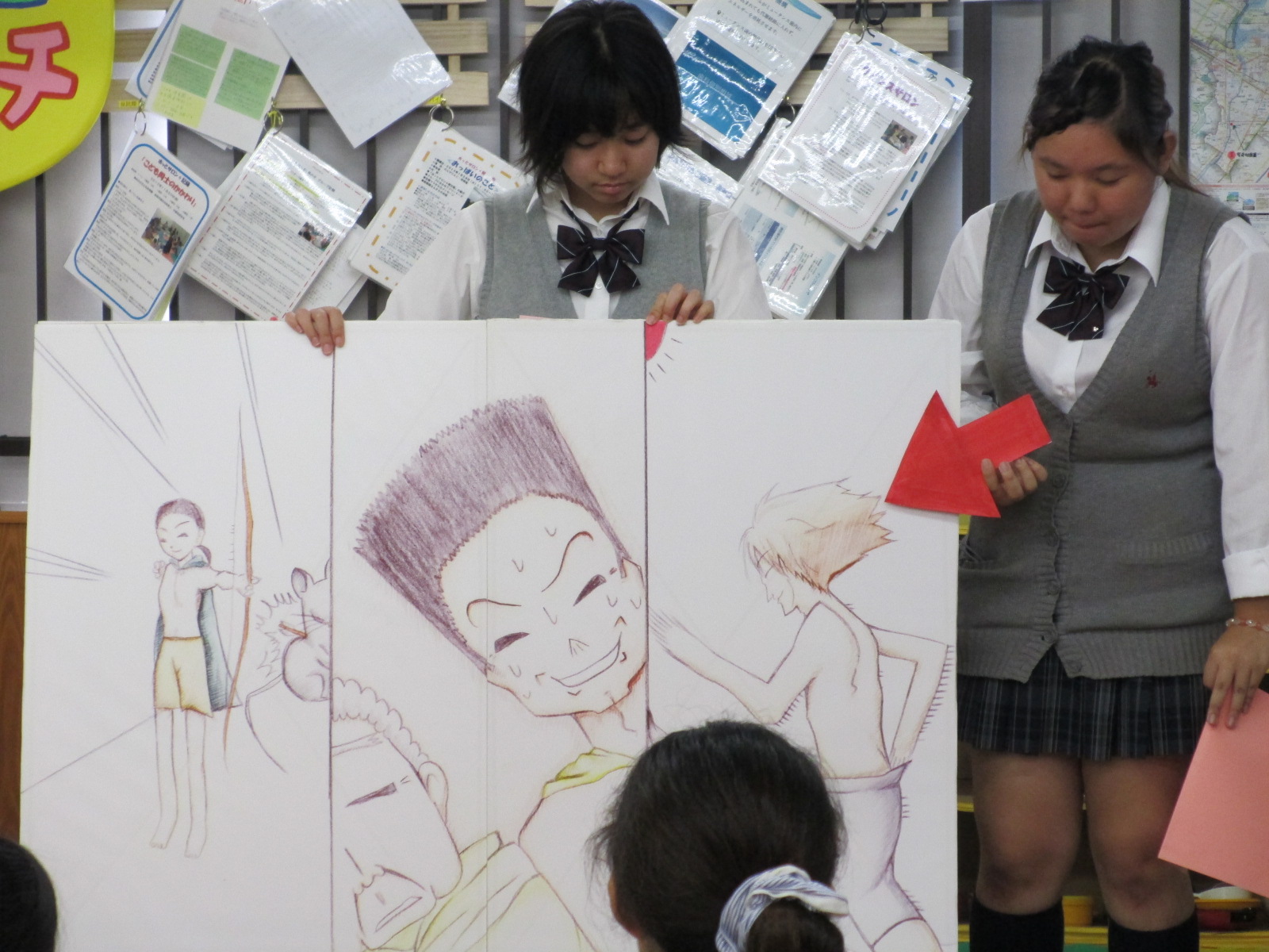 APECでいろいろな国の文化を紹介するという取組の中で、高校生達がいろいろな国の民話などを大型絵本にして紹介しました。