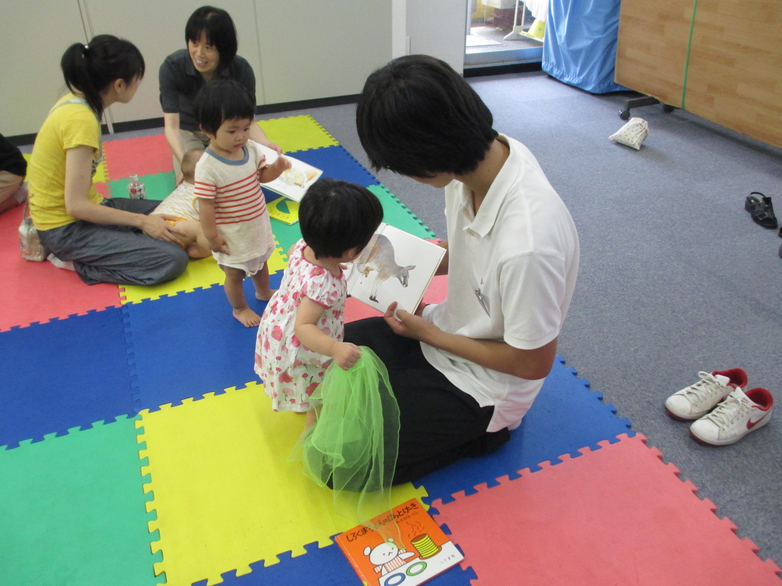 こどもたちはひきつけられるように絵本に近づいたり、絵本をみたりしていました。