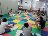 さて、今日は横浜中央YMCAから講師の方に来てもらって、ベビーマッサージの体験会を行いました。