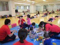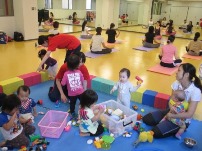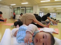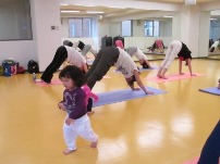ヨガは、親子同室で実施。