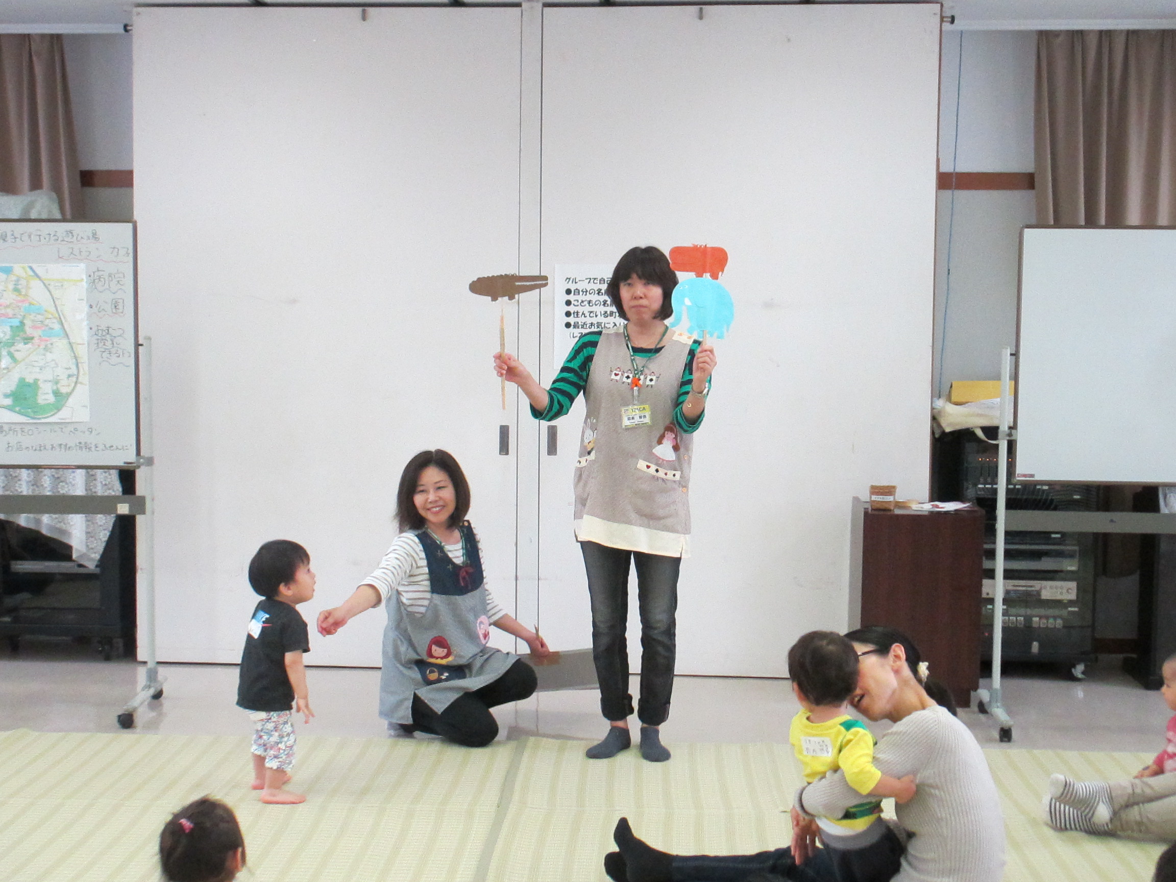 のんびりんこにまだ来たことがない親子も2、3組いました。そして、ほとんどの親子が出張のんびりんこに参加するのは初めてでした!毎回様々なお母さん、お子さんと会うことができているんだな、としみじみ感じました。