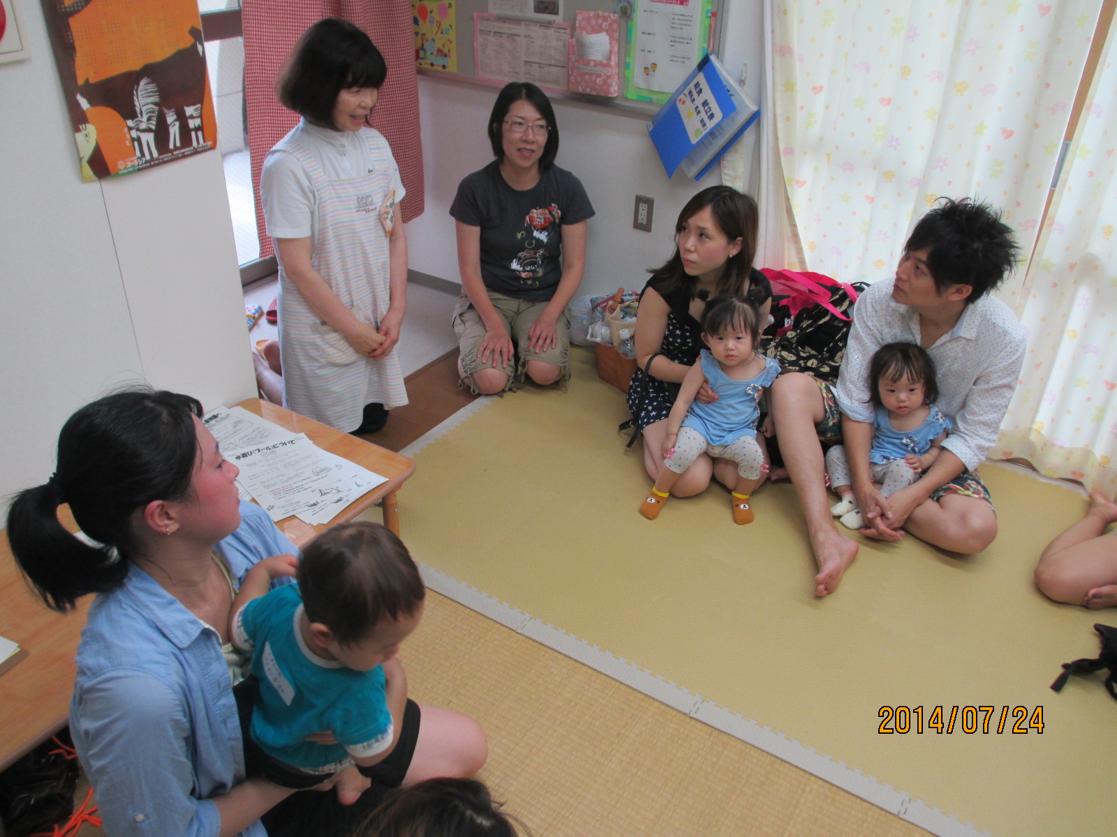 保育園のお話→保育園見学→プールあそび→みんなでお弁当