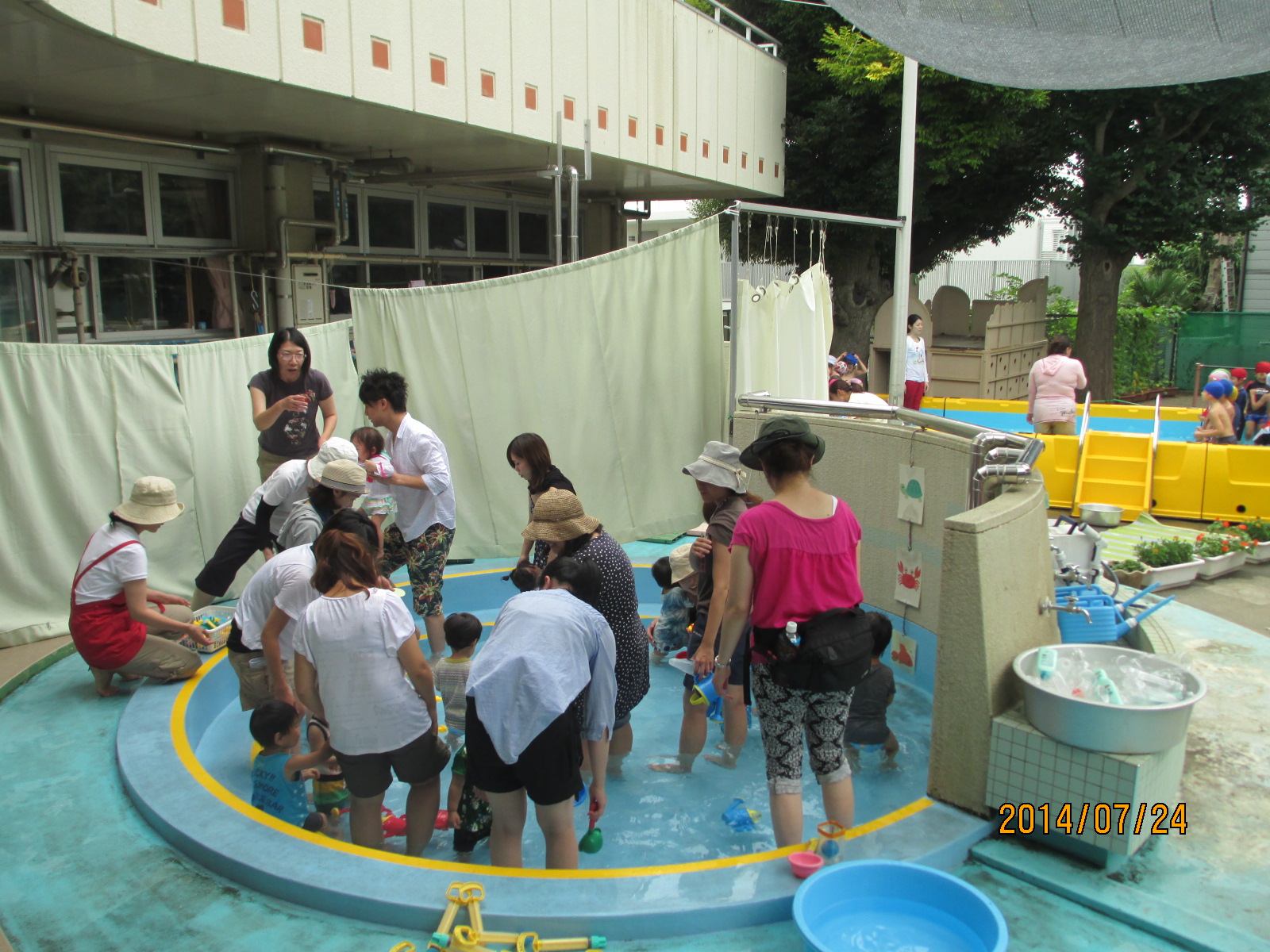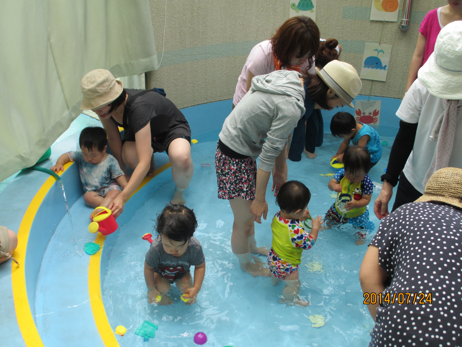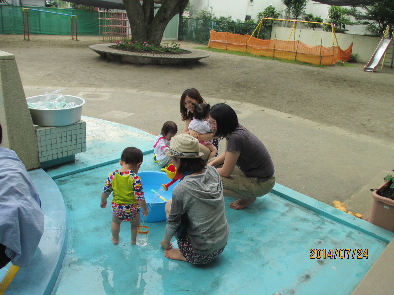 でも、プールサイドのたらいの中でじょうろやおもちゃで遊んでいる様子を見ていると、
