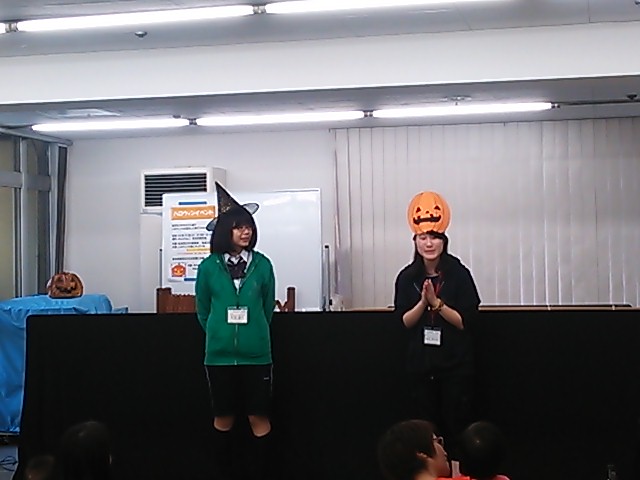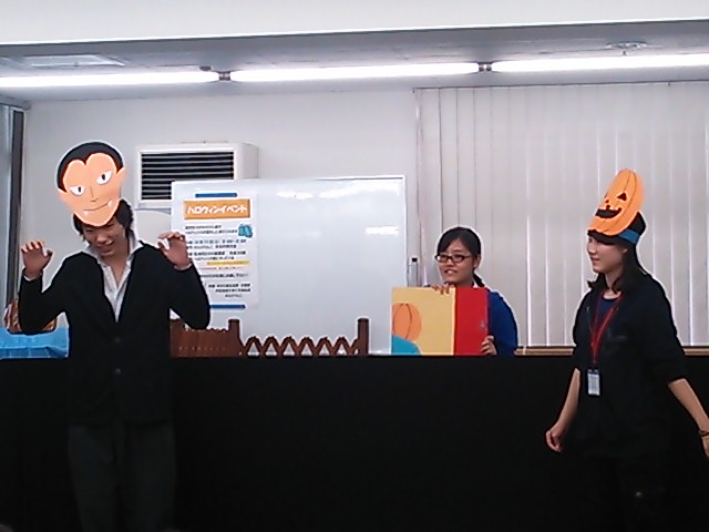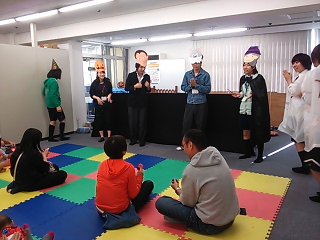 ハロウィンの紙芝居にあわせていろいろな登場人物が現れてきましたよ~!