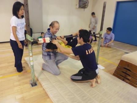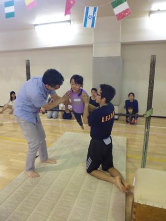 その後は2つのグループに分かれてリーダーと一緒にさかあがりの練習。