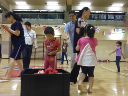 次は玉入れ大会!2つのグループに分かれてどちらが一番多くの玉をいれることができるか競いました。