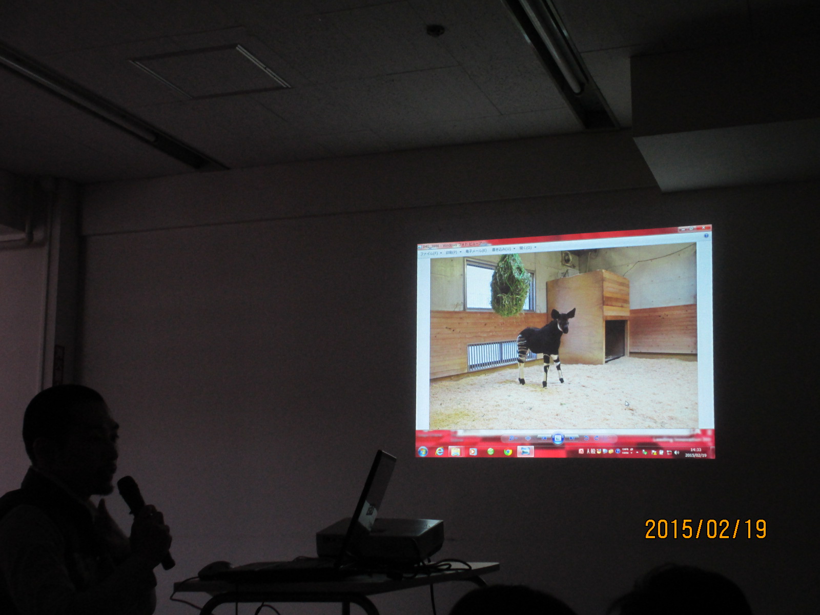Mさん(パパ)はオカピの飼育担当なので、授乳の様子などの貴重な映像もみせていただきました。