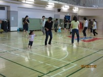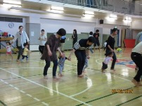 1才6ヶ月~2才のお友達とパパ、ママで音楽に合わせて踊ったり、走ったり、広い体育館で思いっきり遊びました。