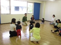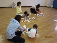 午前中は、1才6ヶ月~3才の子を対象にした「英語であそんじゃお!」を行いました。外国人講師のHya(ハヤ)先生と一緒に英語で身体を動かしたり、英語で動物の名前を言ったり、絵合わせカードを使って遊んだり、楽しく遊びました。