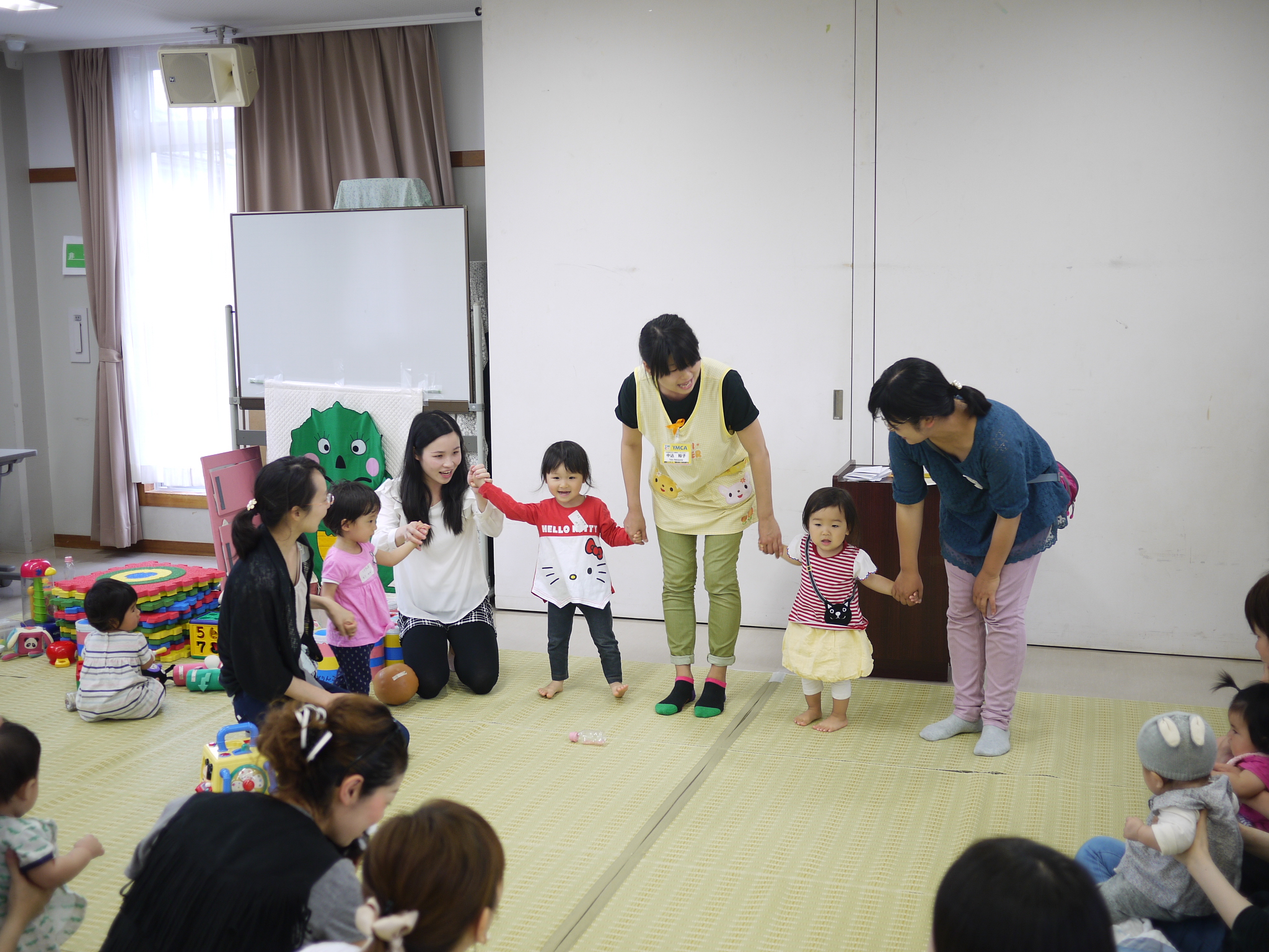 ふれあいあそびでは歌を歌いながら体を動かしたり、一本橋こちょこちょで子どもとにっこり遊びました。