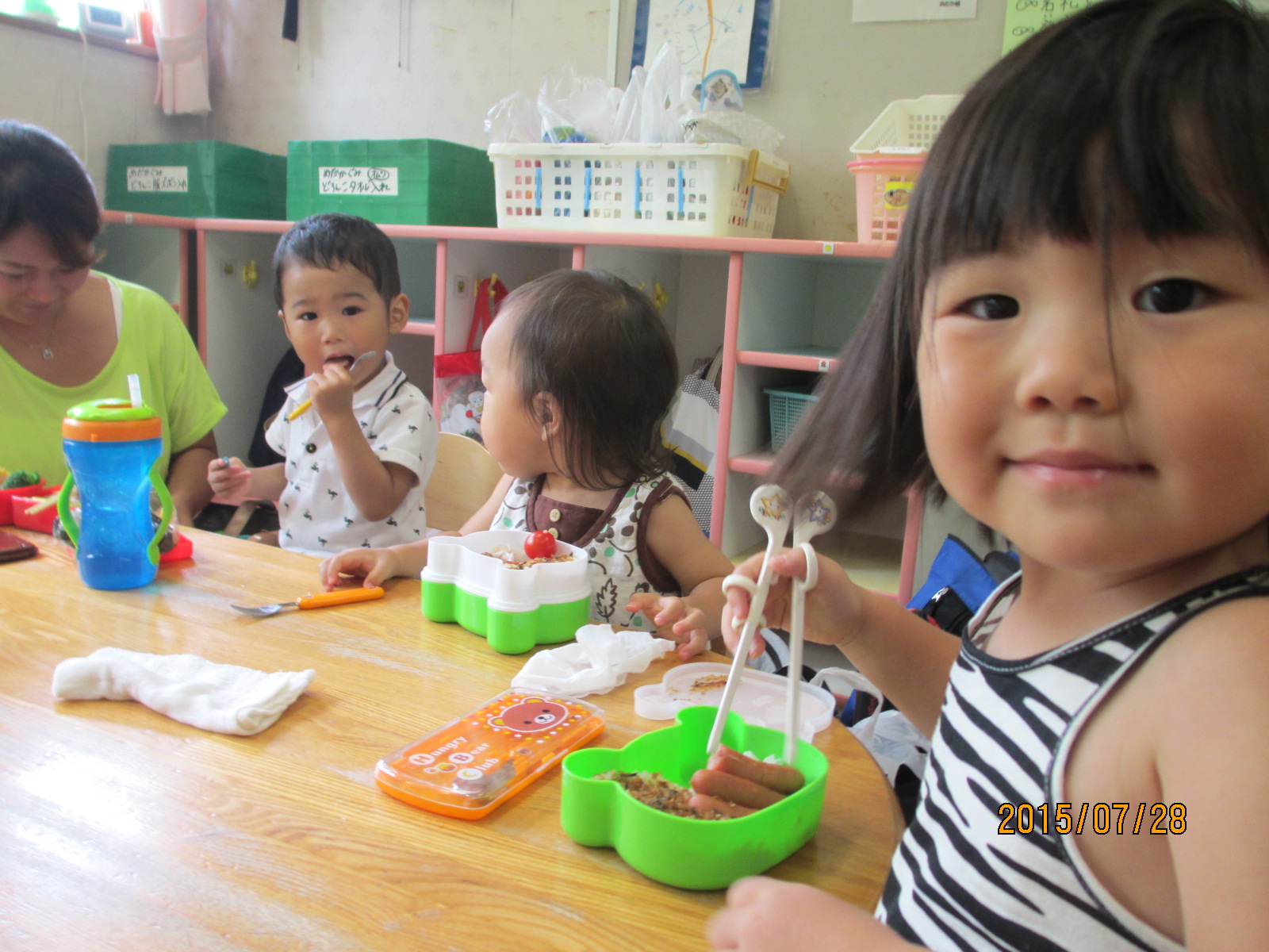 ちょうどいいサイズにみんなご機嫌!座ってもぐもぐたくさん食べていました。