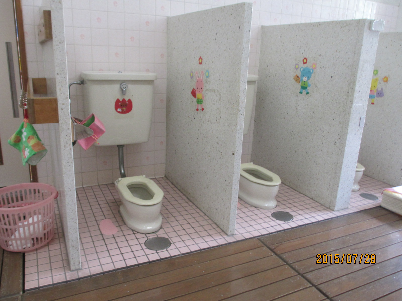 プールの前には1,2歳児クラスのお友だちが使う乳児用トイレを使わせていただきました。