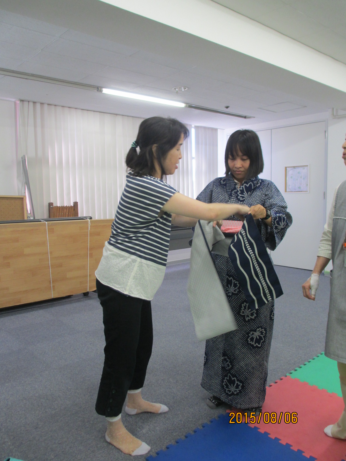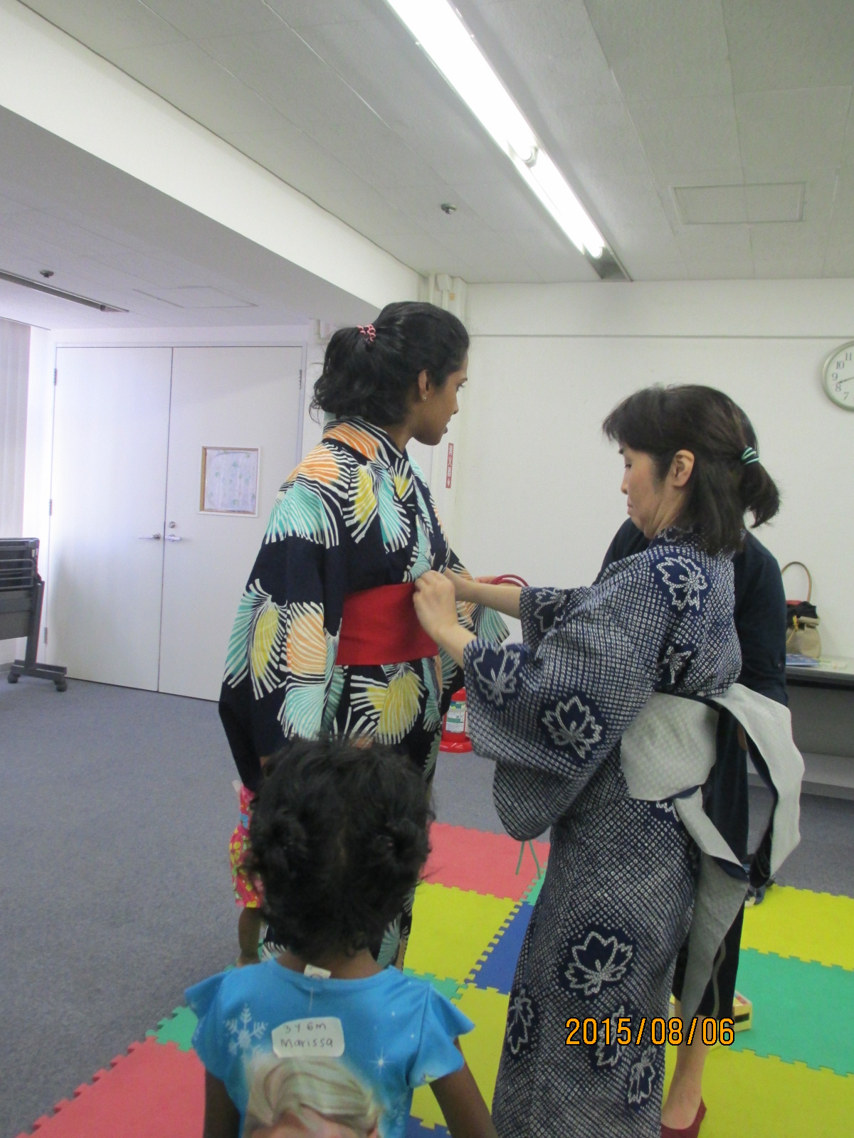 ということで、希望者にゆかたの着付けをしましたヨ❤