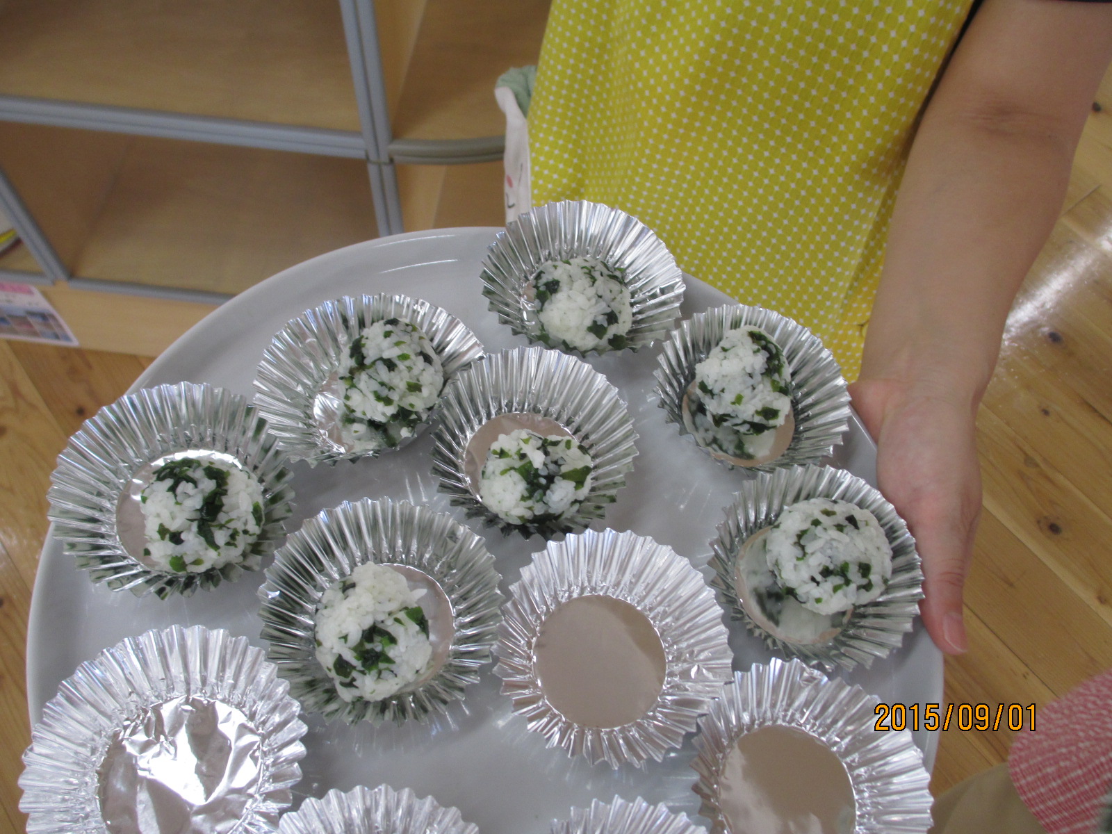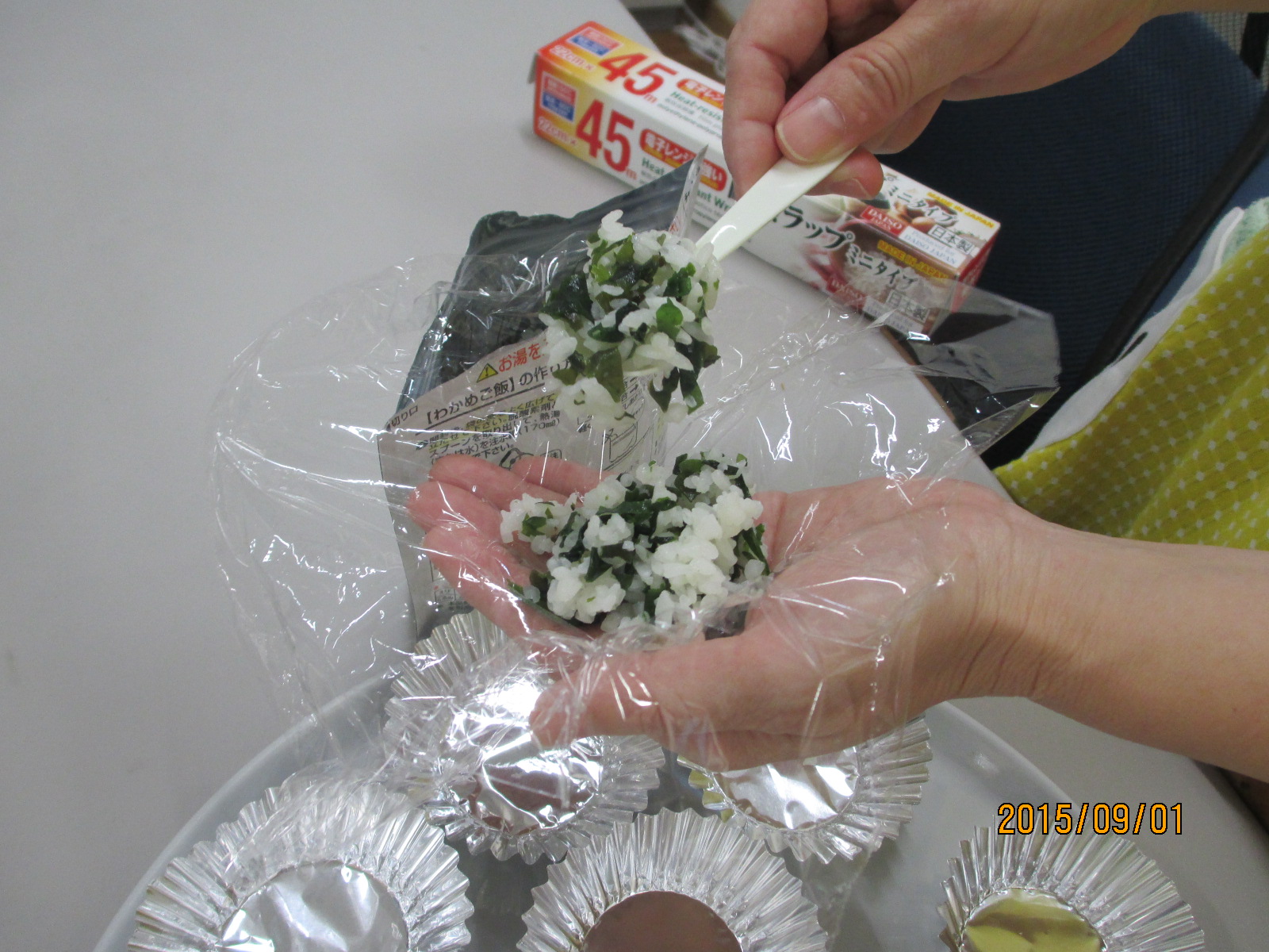 ←ラップにご飯を広げてクルクルすると一度に何個もできますよ❤(プチ情報)
