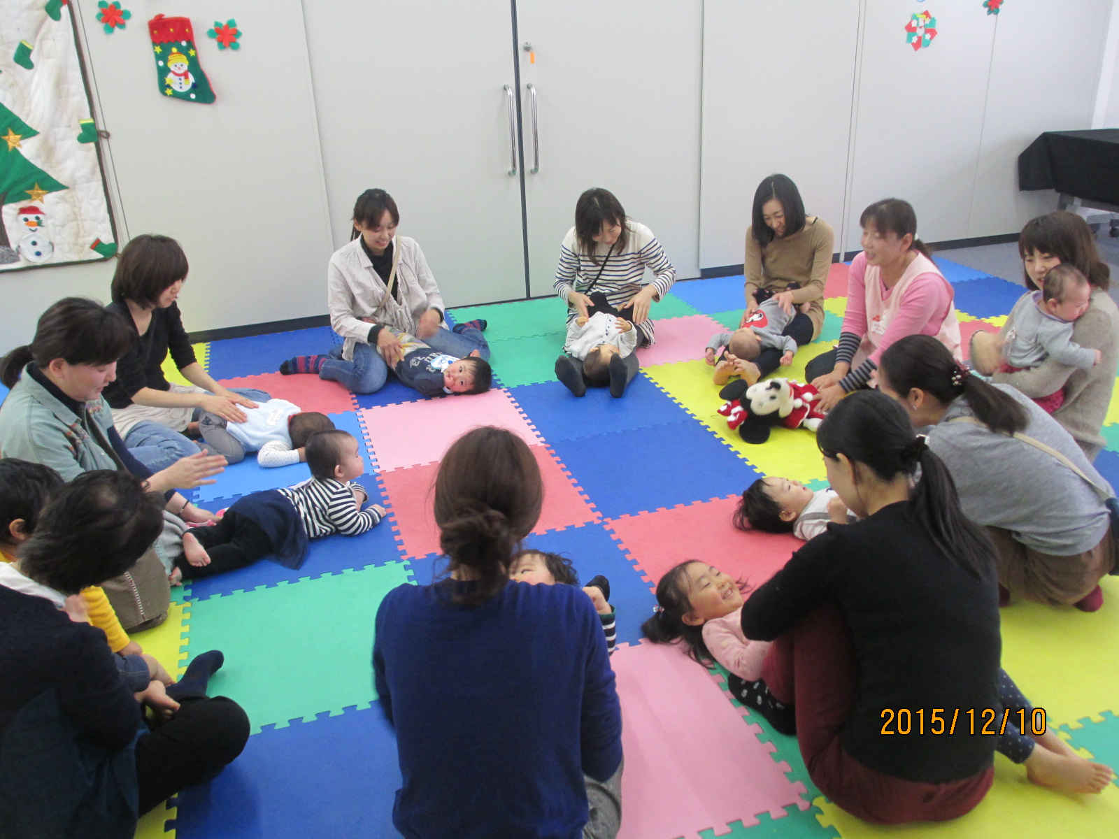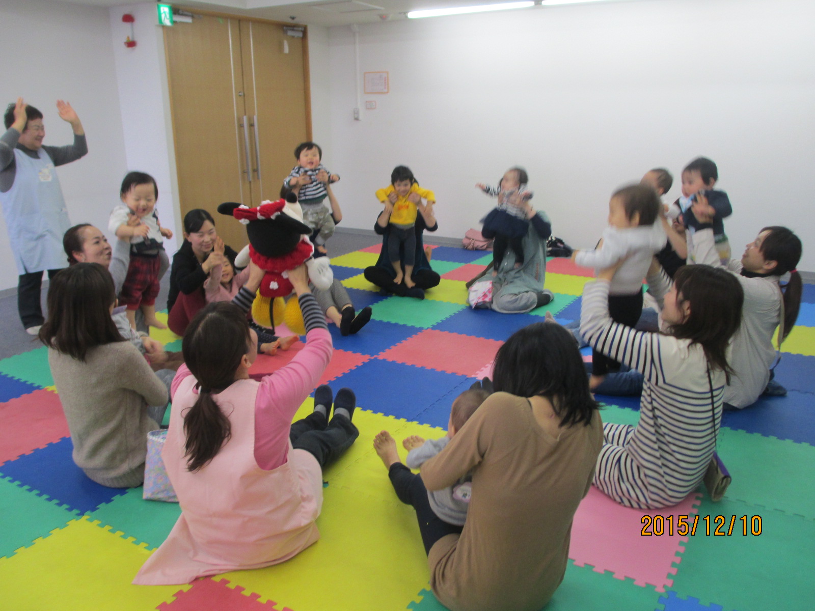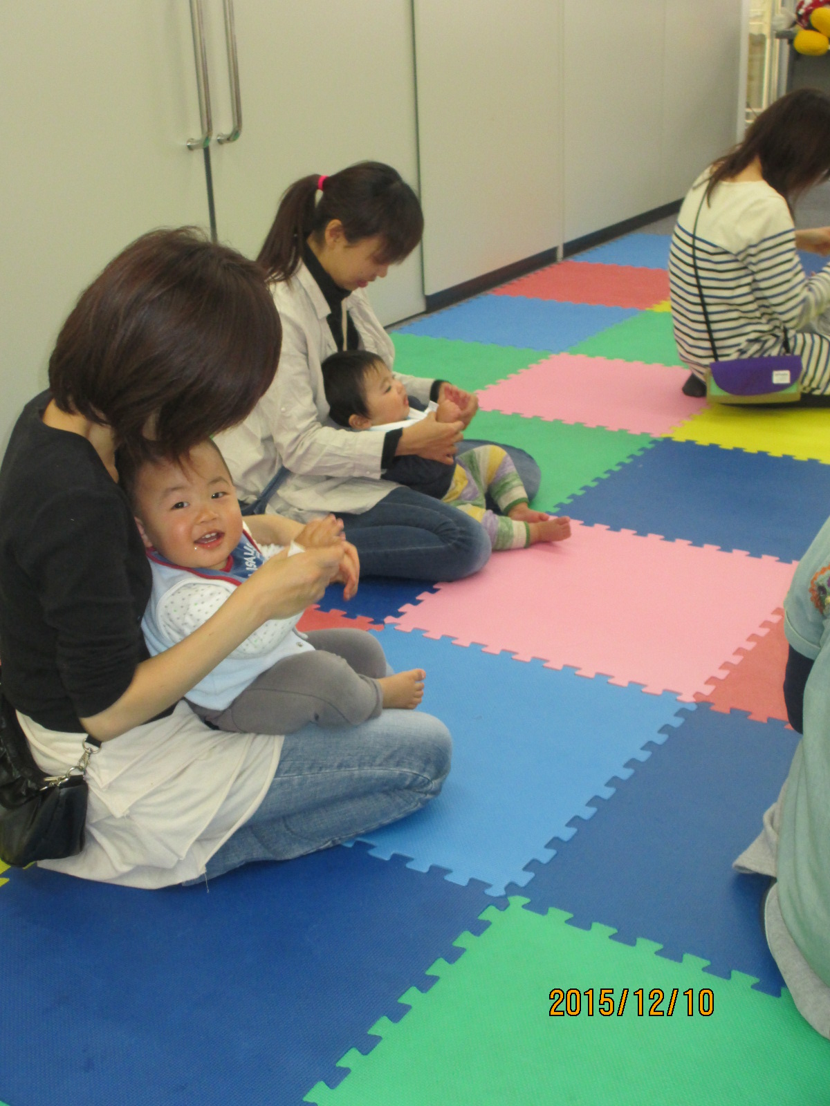 自然と親子も左右にゆらゆら、どてっと転んだり、にこっと笑ったり。