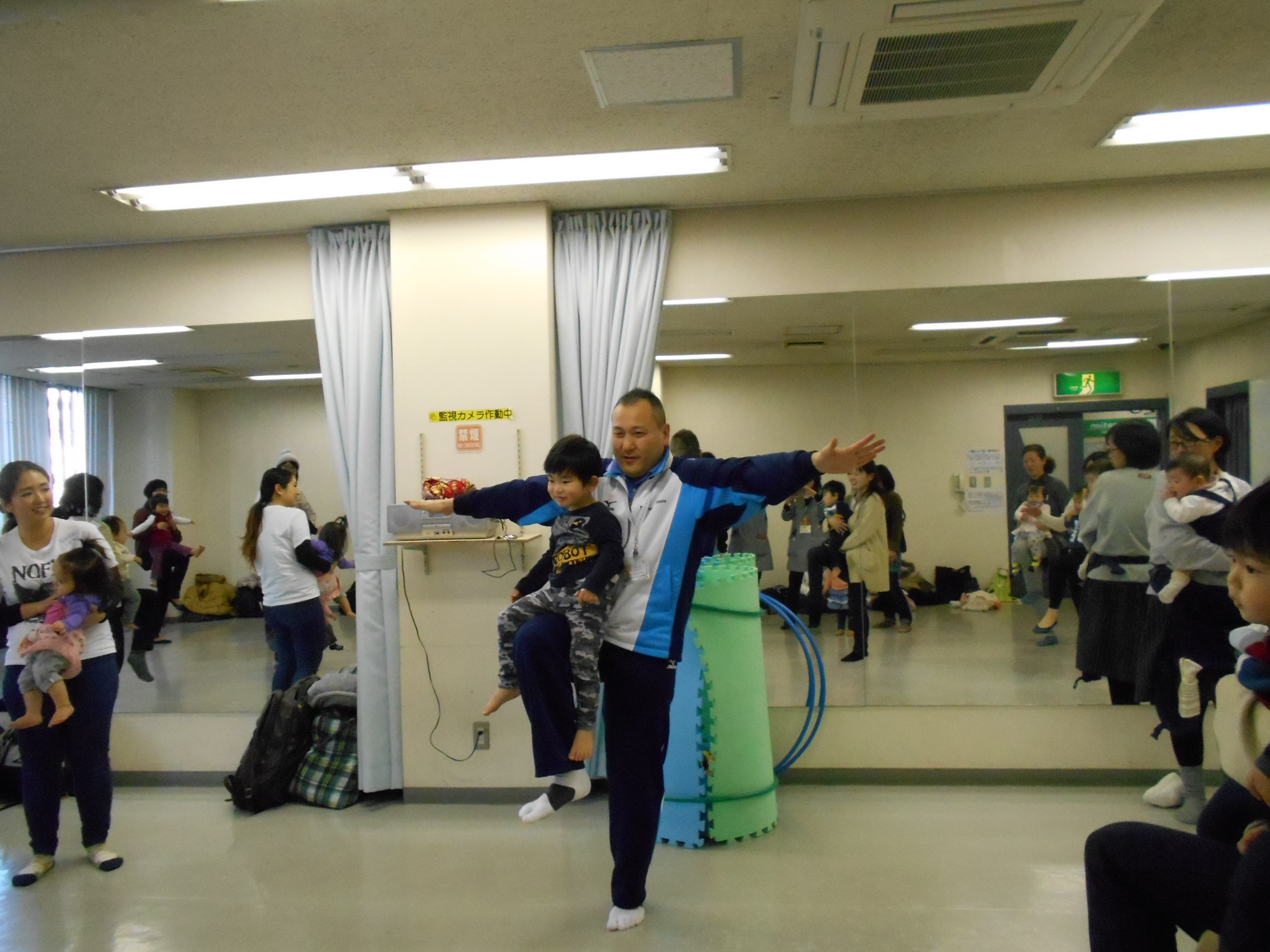 「おやま~!」「ひこうき~!」「ぐるぐる~!」「バランス~!」等、親子でたくさん身体を動かしました♪