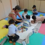 作業中、お子さんたちも場に慣れると、子ども同士で遊んだり、ボランティアさんと一緒にあそんだり・・・と楽しい時間になったようです。