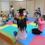 子ども達もマラカスを振ったり、2つを叩き合わせたりと