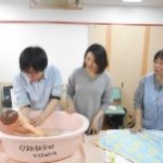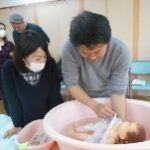 順番に沐浴体験!夫婦で手順を確認しながら実践!