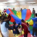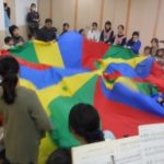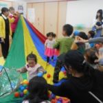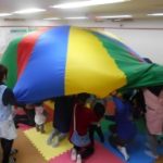 クライマックスに向かって、学生さんとママ達でパラバルーンをバッサ、バッサと上下に・・・