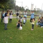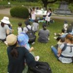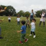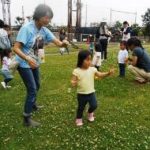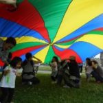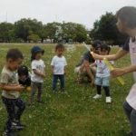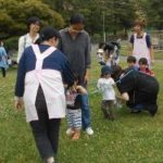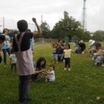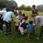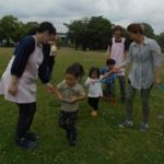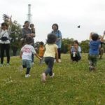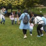 毎回、子育て支援者さんが外遊びの楽しさやバリエーションを伝えて下さり、沢山の親子が参加します。
