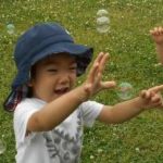 風に乗って飛んでいくシャボン玉を夢中で追いかけました!