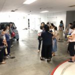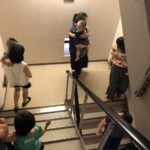 ひろばからは20組の親子+スタッフ7人+ボランティア・カウンセラーの計49人が1階の駐車場まで避難しました。