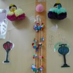 榊さん作品③ た~くさんあったポンポンを使って・・・カラフルな「あられ」のような飾り💛