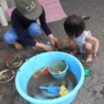 後半はみんなで道を作って大きなたらいでお水を流して川を作りました。