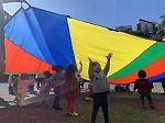 いち、に~いの、さ~ん!パラバルーンが膨らんだ!
