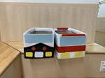 段ボール箱がおもちゃに大変身。ご自宅でも段ボール箱にシールや色紙を貼ってぜひ作ってみてください。