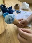 *材料* カレンダーやチラシなどのやや硬めの紙・新聞紙・ティッシュペーパーまたはキッチンペーパー、お花紙・セロテープ・ガムテープ・はさみ
