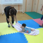 緊張もほぐれた頃、先生がお部屋に高低をつくってくださいました♪