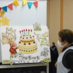 最後は、パネルシアターの大きなケーキにろうそくを灯して、『ハッピーバースディ』のお歌を歌います