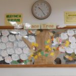 “のんびりんこの木”には、オレンジキャンペーンのメッセージがたくさん貼られています。