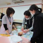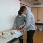 研修室では、妊娠中のご家族を対象に赤ちゃんのお風呂の入れ方、沐浴体験を行いました。