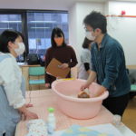 その後、講話と実演を受けて、実際に沐浴体験を行いました