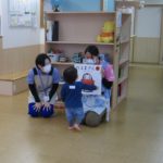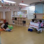 そして今日のお帰りの会は天井のだるまさんにあわせて「だるまさんが」を