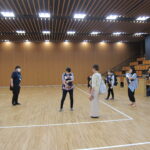 師範の方が試合を見るスペースを見せてもらったり、師範になったつもりで入らせていただいたり。