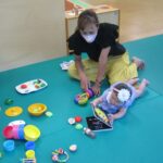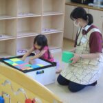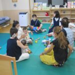 また、ひろばには実習生がいてくれ、幼児さんと一緒に遊びました。
