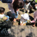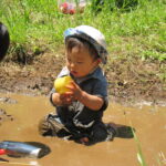 どろだんごを作ったり、お水を運んで池を作ったり、初めは躊躇していたお子さんも最後は思いっきりバシャバシャと遊んでいました。
