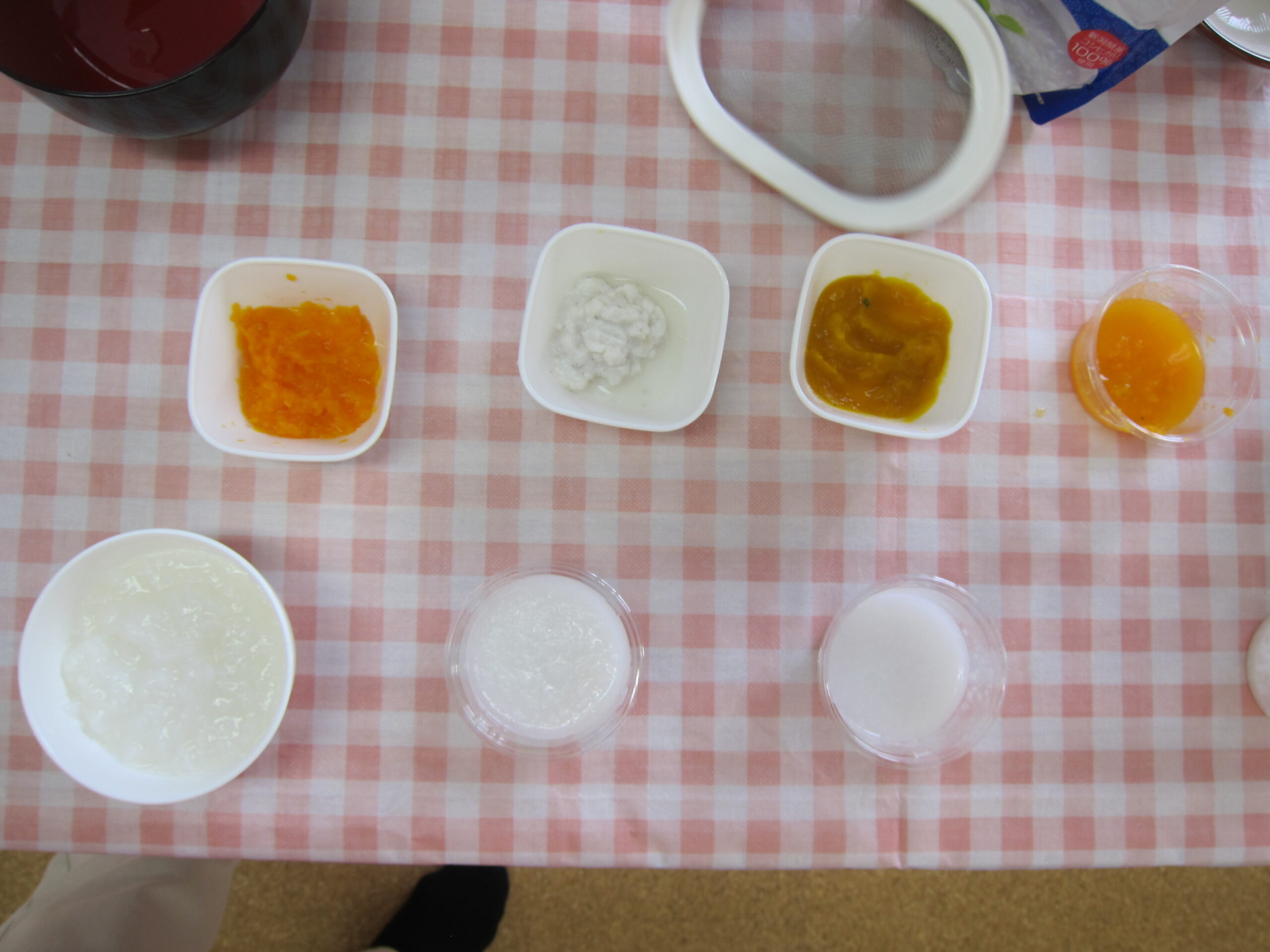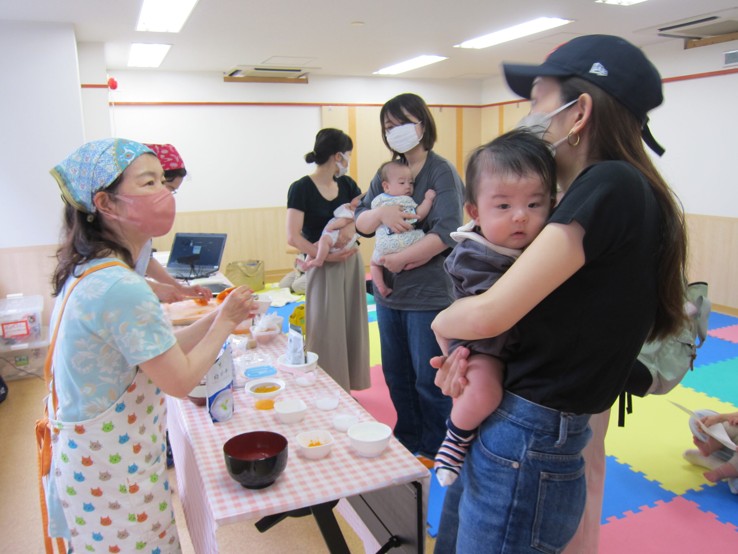 講座の後は、実際にデモンストレーションで作られた離乳食を近くで見たり、栄養士さんに質問をされていましたよ。