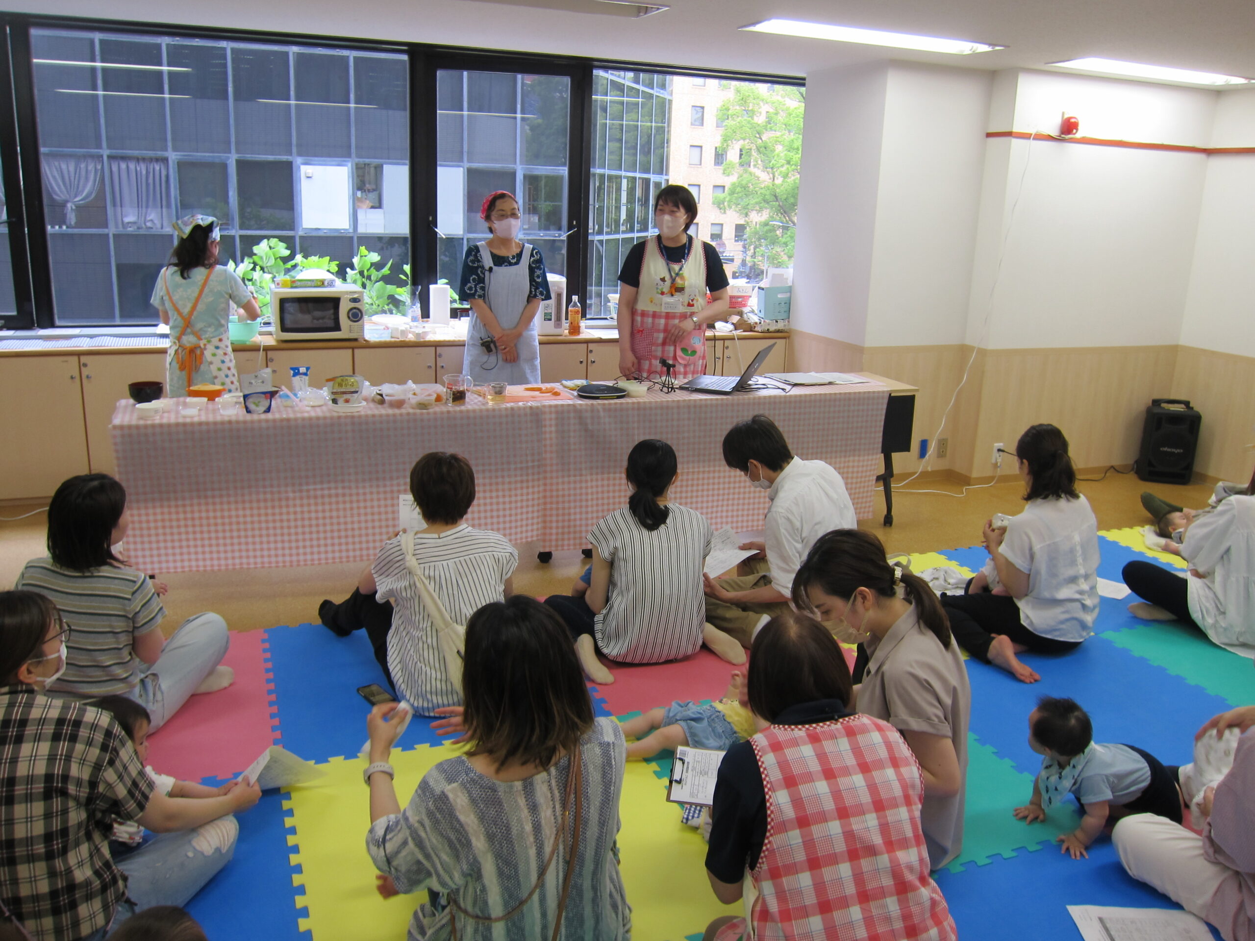 講師の栄養士の長谷川さんのお話をママやパパと一緒に赤ちゃん達も聞いていましたよ( *´艸`)