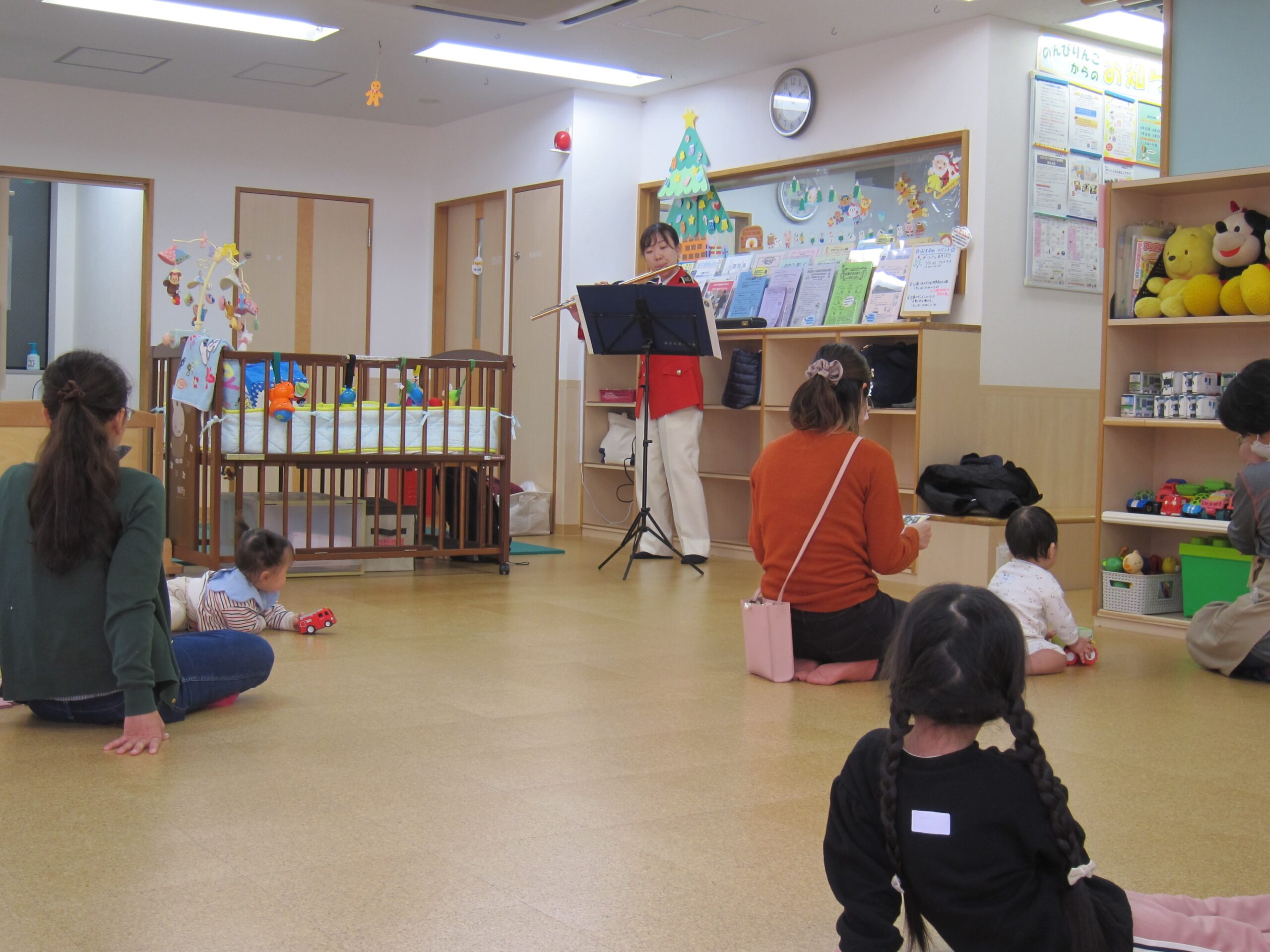 今回はとなりのトトロやアンパンマンマーチ、リトルマーメイドなど、赤ちゃんやお子さんたちはもちろんママたちもフルートの音色に聴き入っていました。