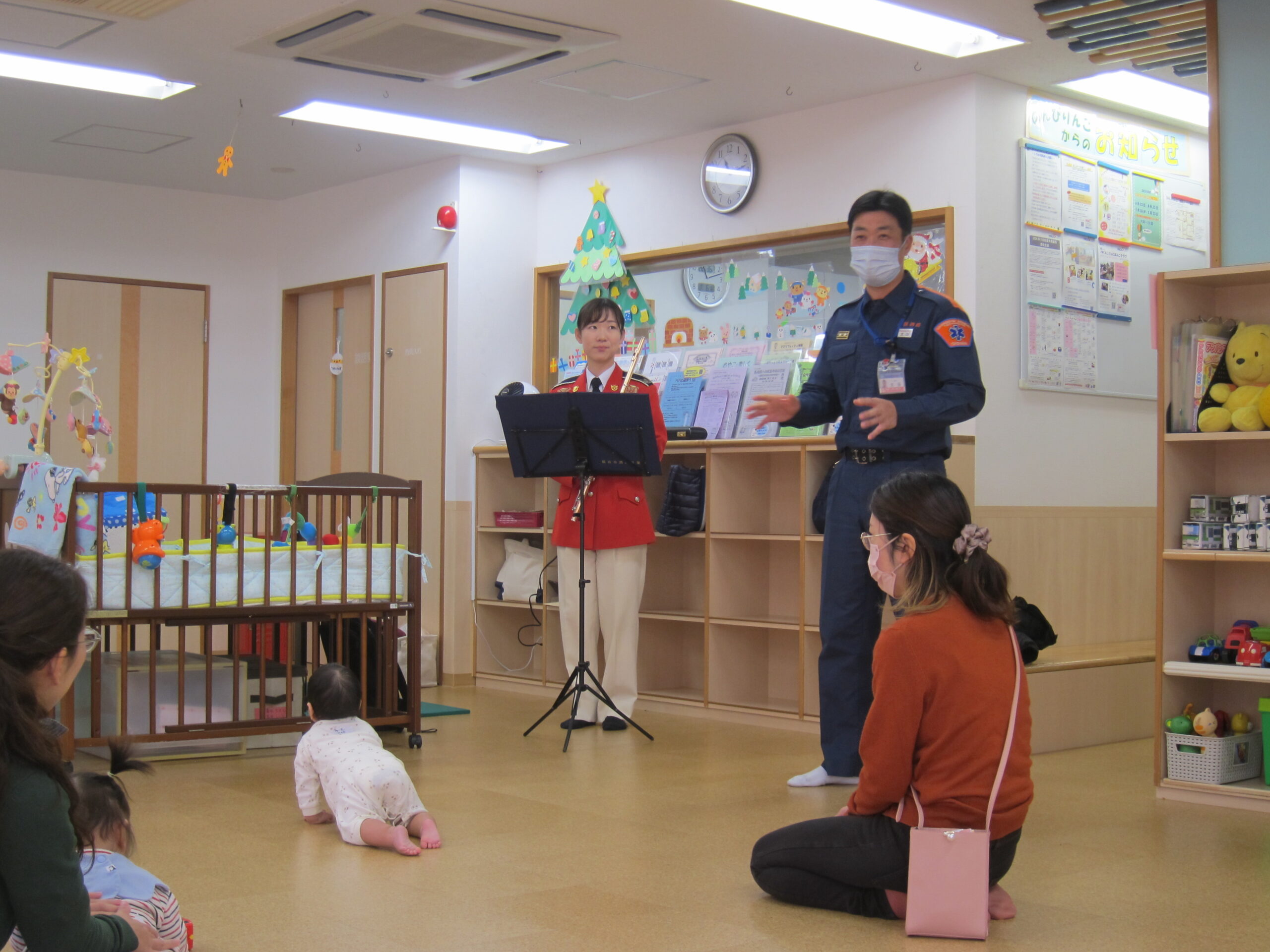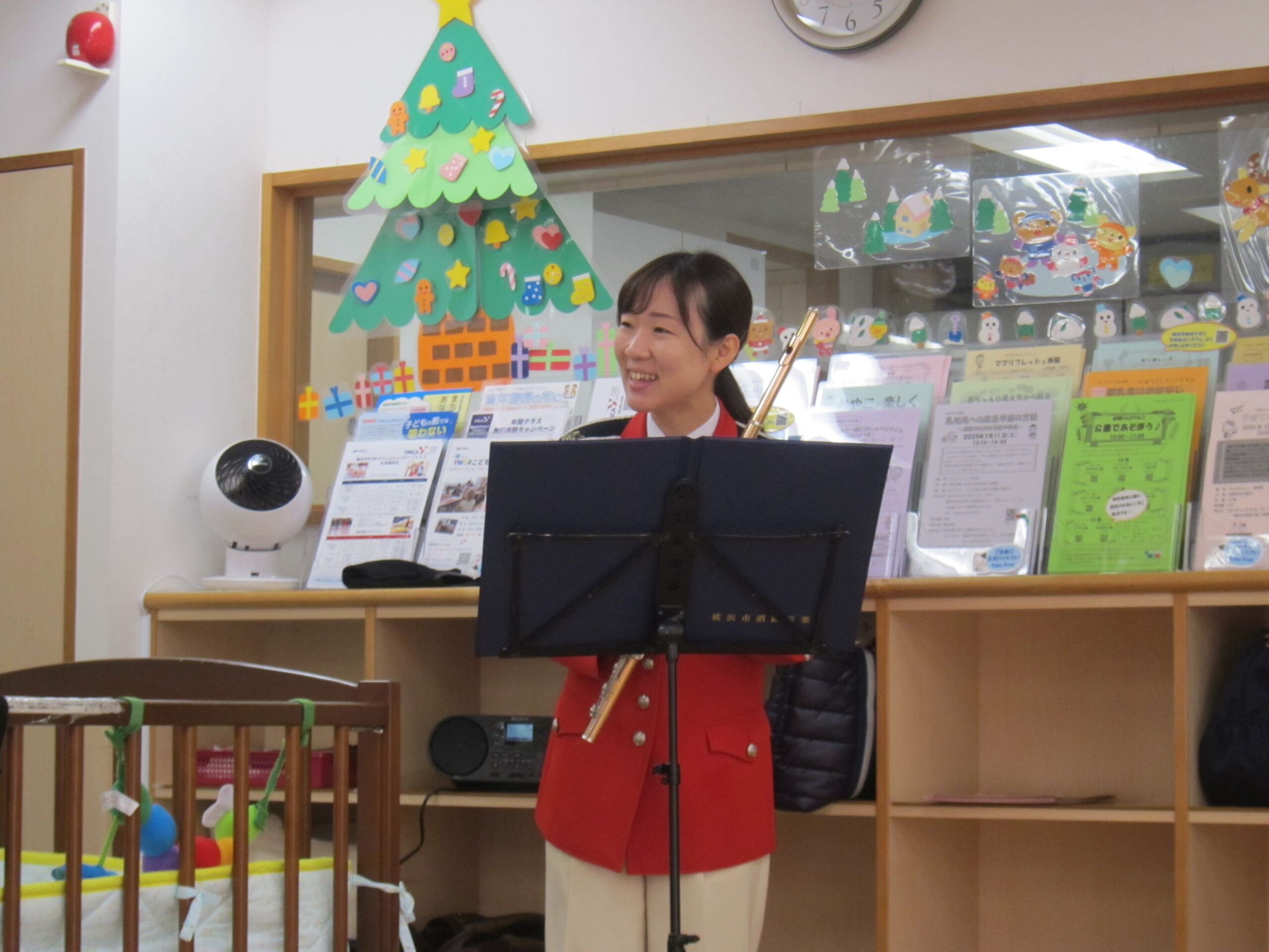 今日は横浜市消防音楽隊所属の隊員さんも一緒に来館され、ひろばでフルートの演奏をしてくださいました。