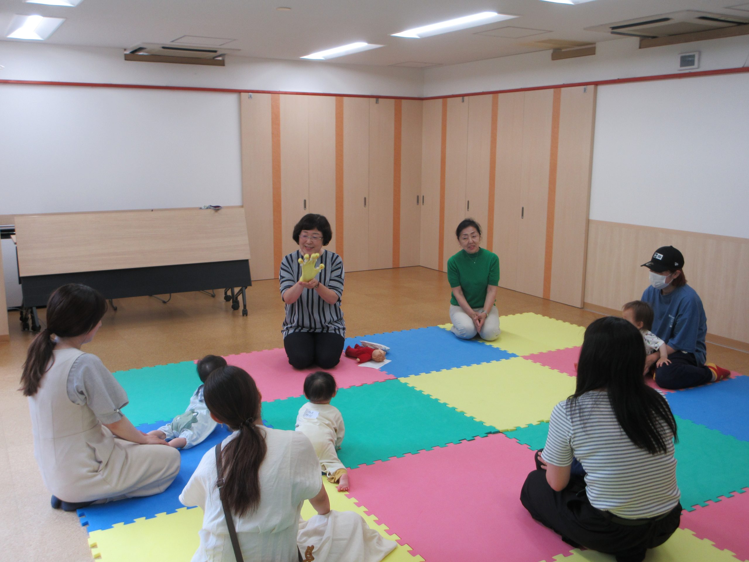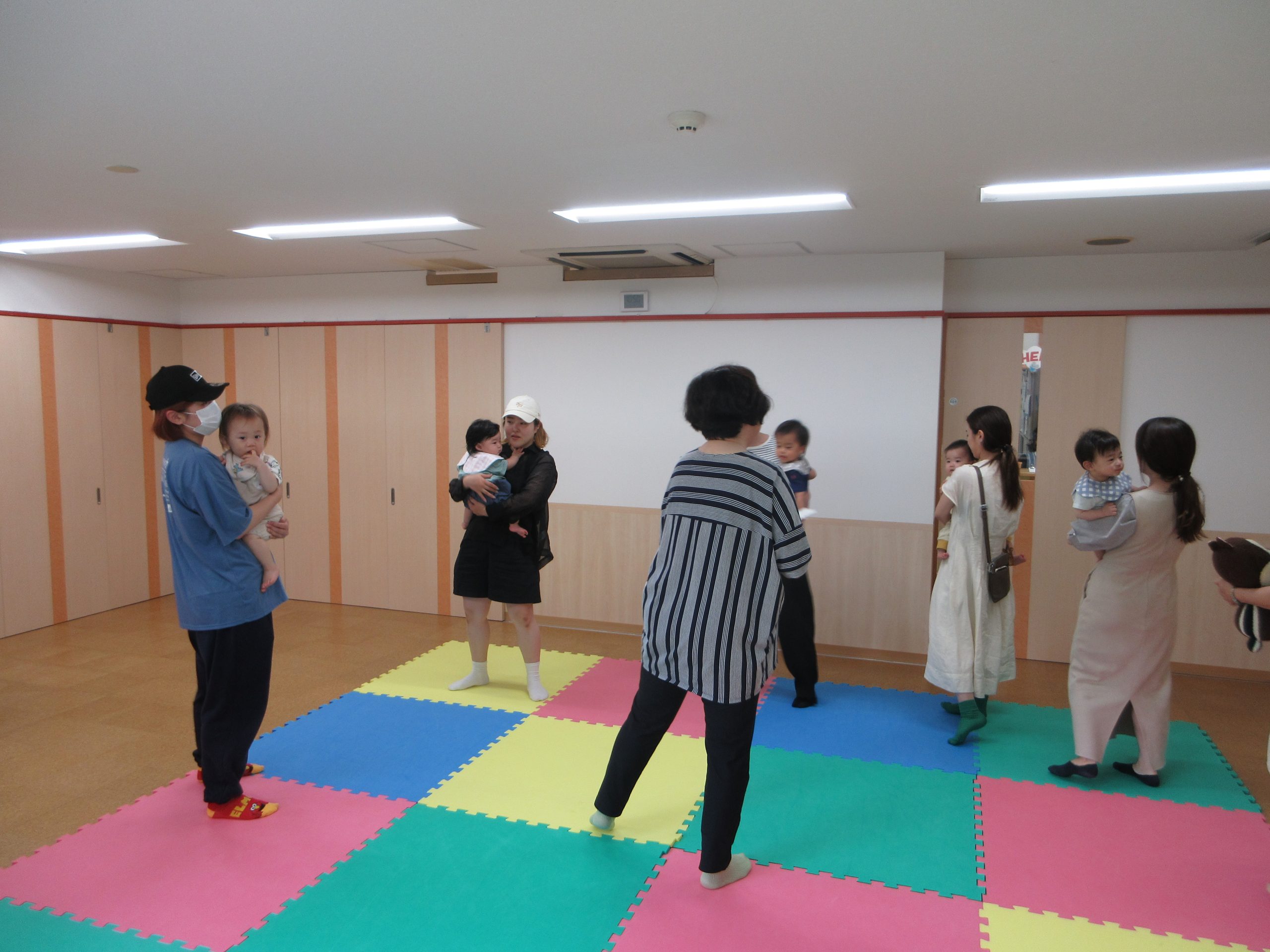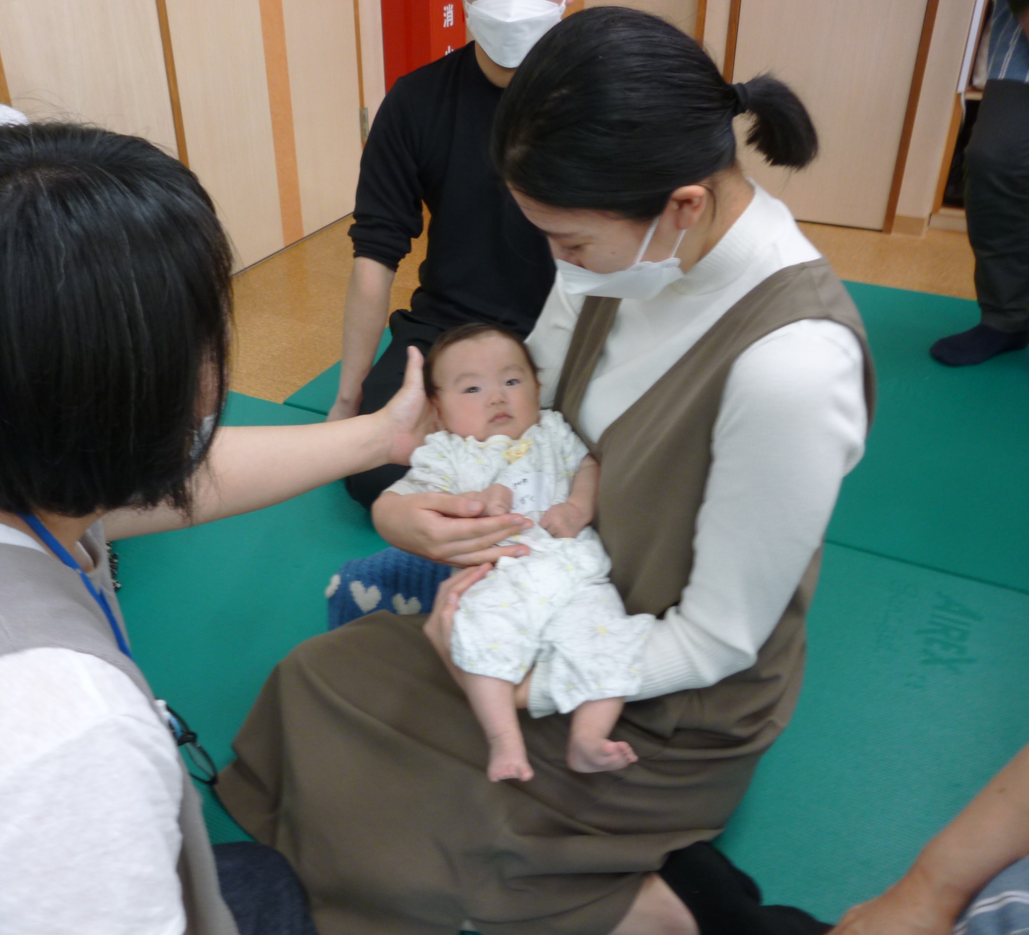 赤ちゃんコーナーで先輩ママや赤ちゃんたちと交流しました。