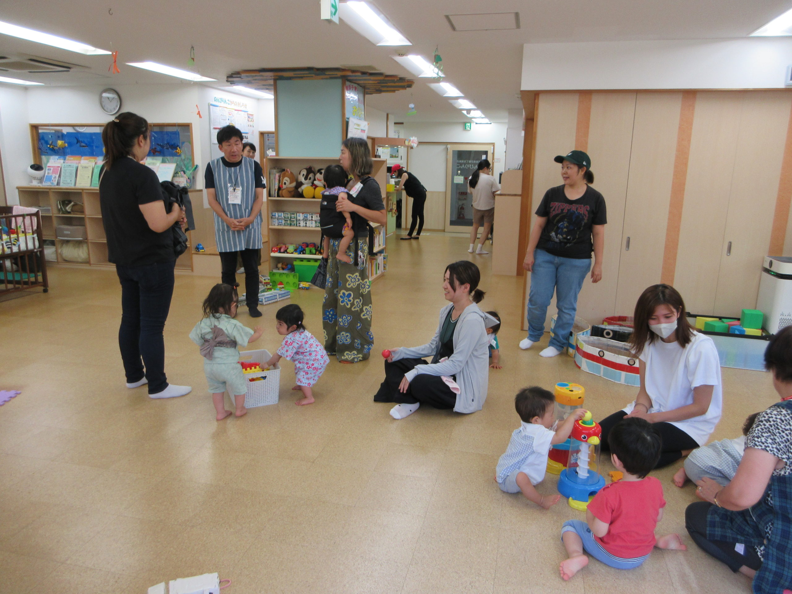 ひろばで遊んでいた親子さんも訓練開始後は緊張感をもって参加してくださいました。