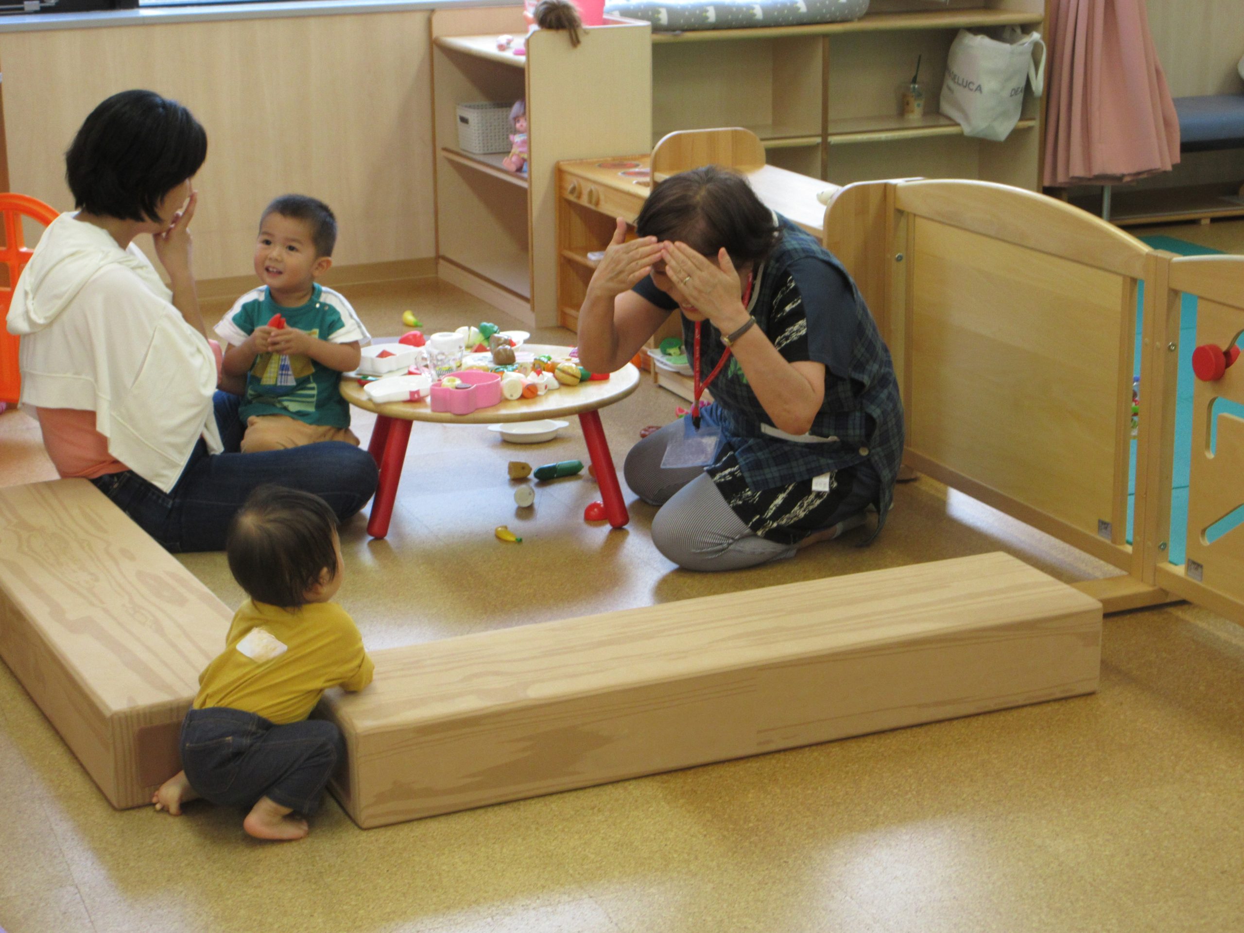 スタッフとみんなで手遊びや絵本を楽しんだり